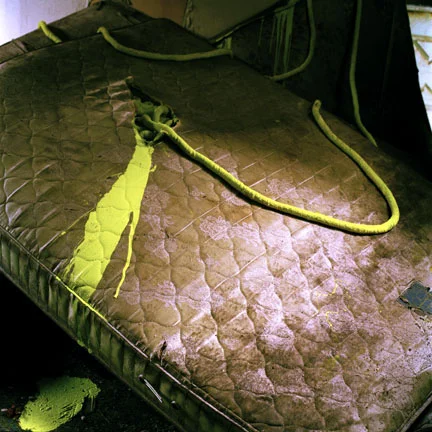 For this series I collaborated with photographer Magali Duzant. By using bright synthetic materials such as sequins, rope and latex paint we built installations in abandoned houses in Braddock Pennsylvania. These interjections mimic natural occurrences of abandonment such as overgrowth, decay, decomposition and infection. The installations portray artificial histories beneath the surfaces and inside the walls. Photography is used to frame particular moments of these gestures.